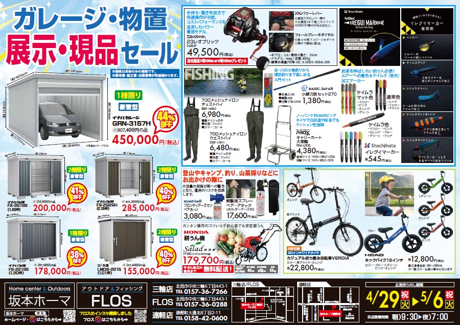 また、ガレージ・物置の展示現品セールもやりますので購入検討している方は この機会に足をお運びください♪